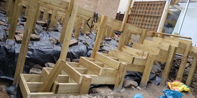 Next we built the retaining wall for a raised border and the deck framing raising the height to a more accessible level.