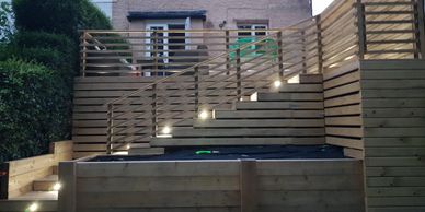 The finishing touches included additional walling around the lower steps and adding lighting providing an attractive feature during the darker months.