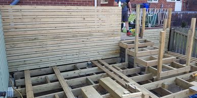 We built the decking framing and bespoke screening which we developed with the client. The project was delivered on time for their daughters 2nd birthday and on budget!